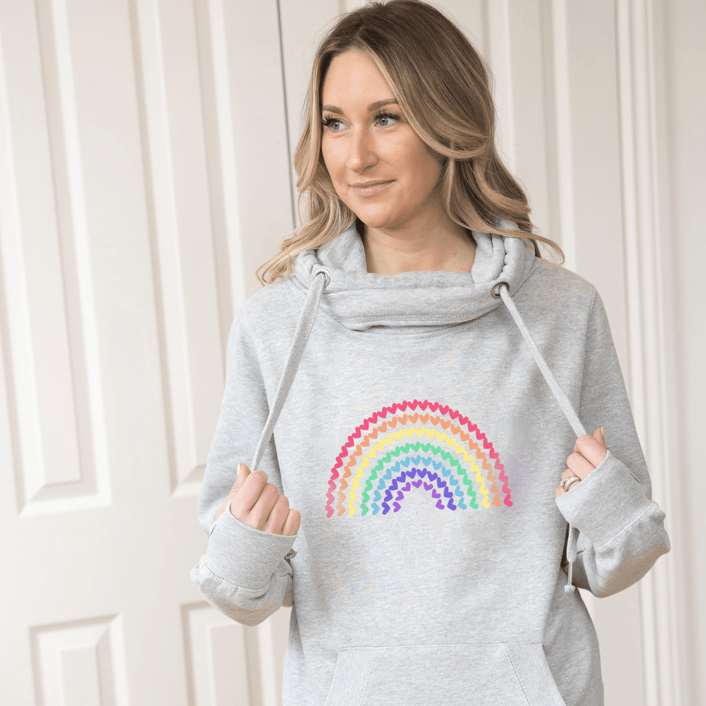 Hearts Rainbow Grey Cowl Neck Hoodie