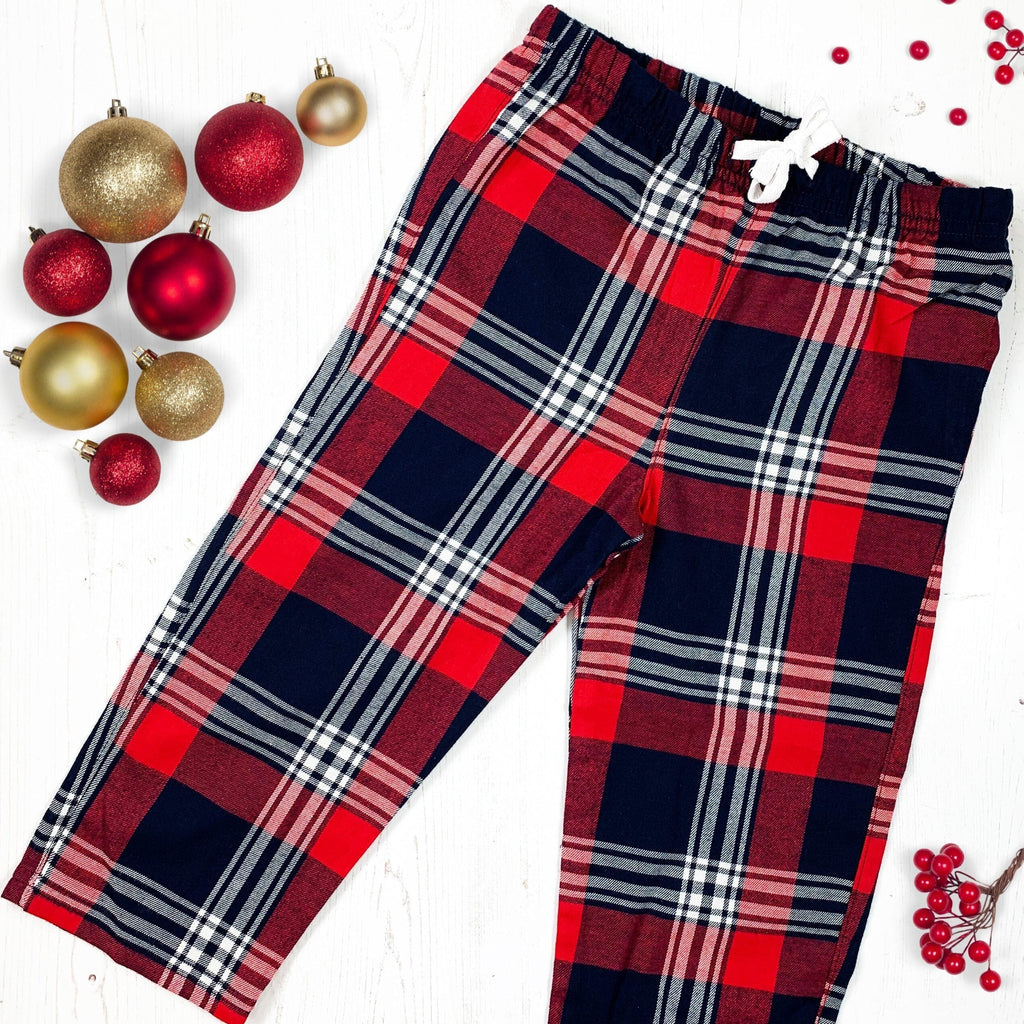 A tradition in many homes, new pyjamas for Christmas are a lovely treat. This pair are ideal for boys or girls, with a modern design. The words 'Ho Ho Ho' are printed in festive red on this soft cotton top. We also have this design in adult sizes for the perfect matching set.