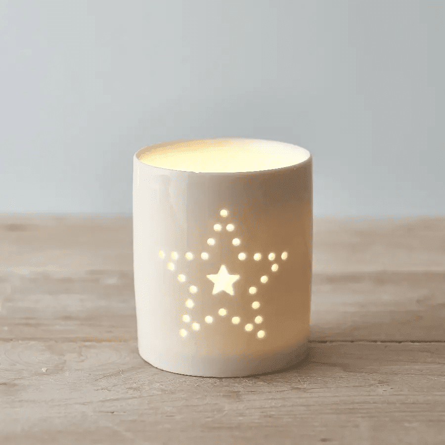 > a ceramic candle holder with a star design worth £7