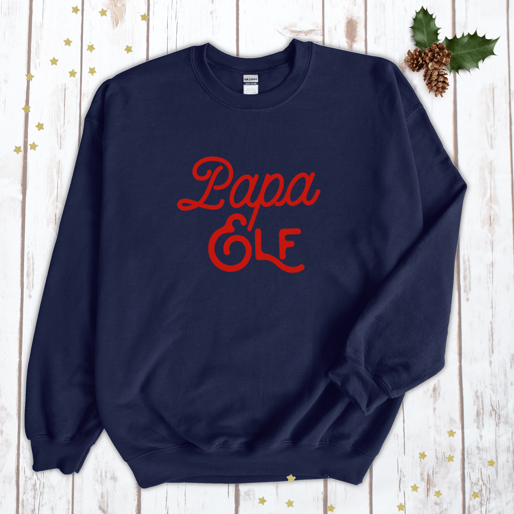 The perfect Christmas Jumper for the man in your life, this Papa Elf sweatshirt is available in navy blue with a red design.