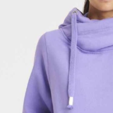 This cosy, colourful cowl neck hoodie is stunning lavender. It features our bestselling flying bumble bee design in metallic silver foil.