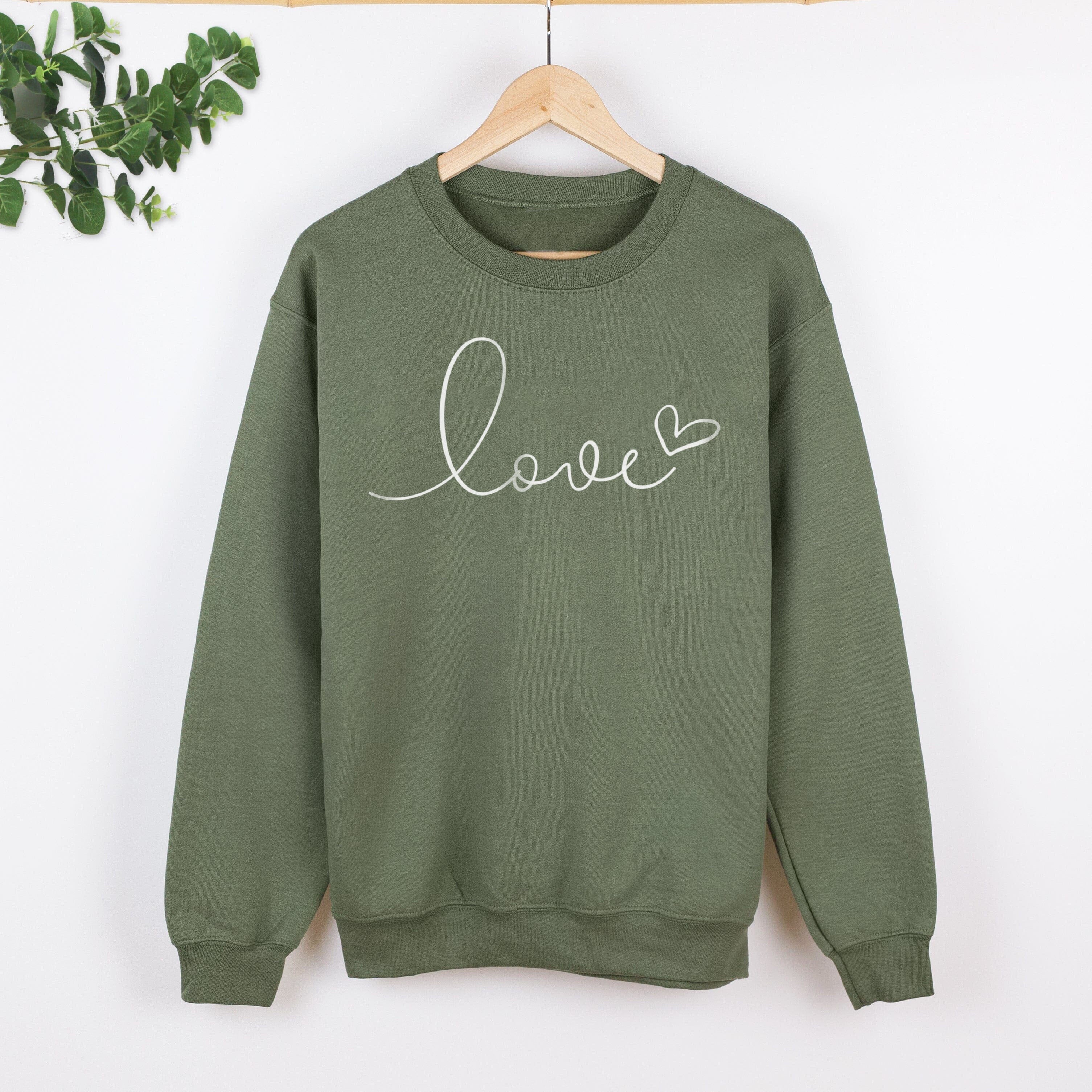 This chic ladies sweatshirt comes in khaki, featuring a handdrawn design with our signature heart illustration.