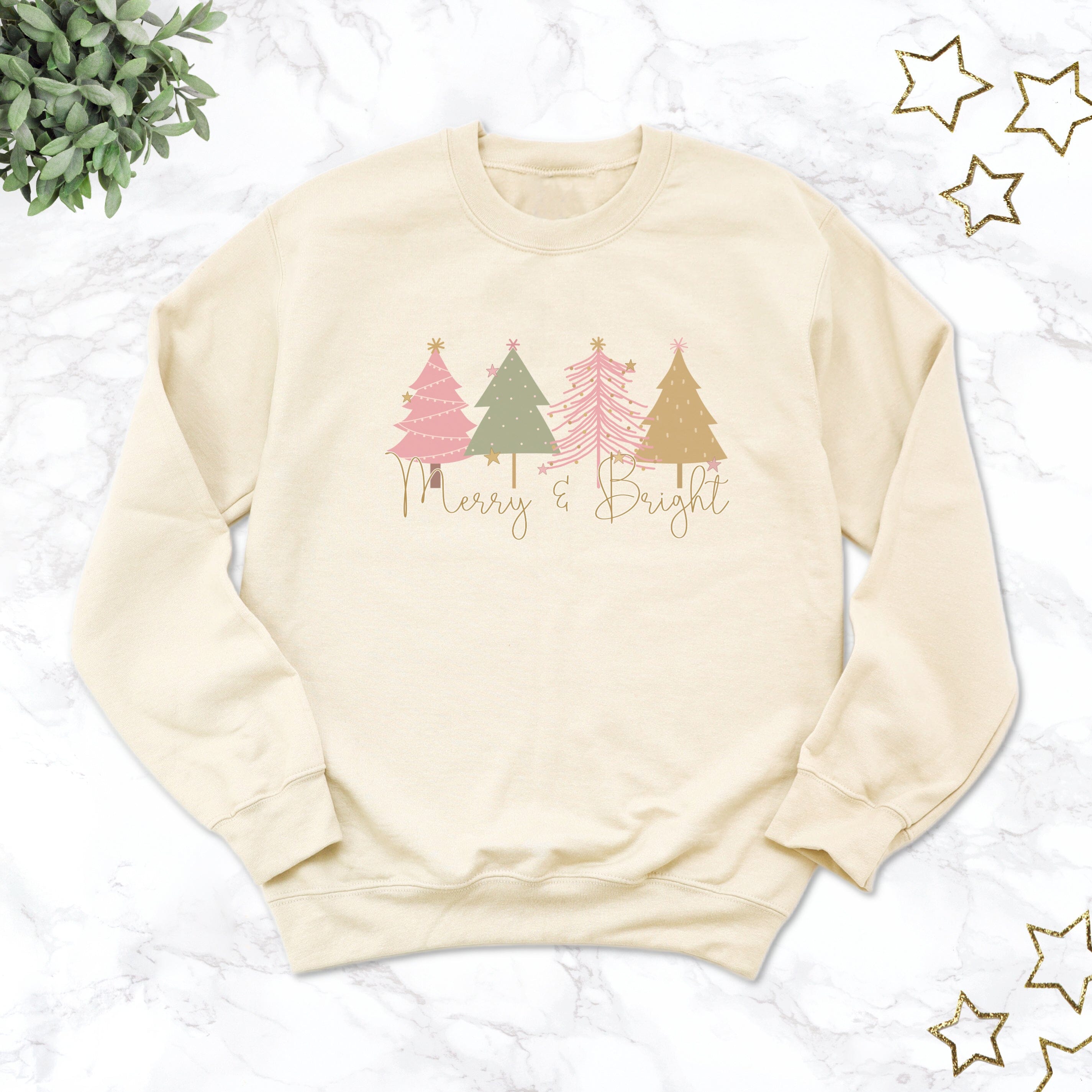 MEDIUM - Merry and Bright Vanilla and Pink Sweatshirt - SAMPLE SALE