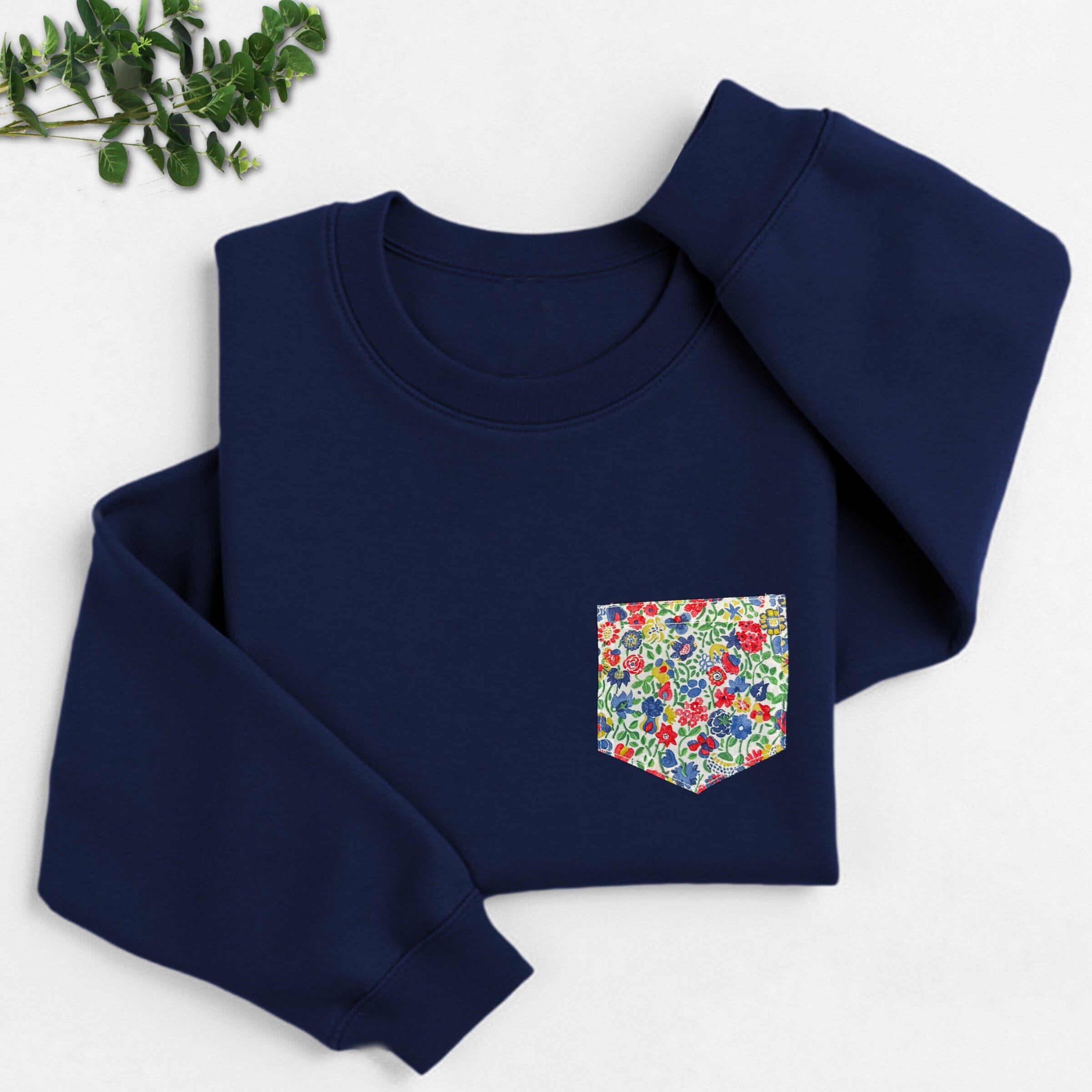 This exclusive ladies sweatshirt features a pocket created from iconic liberty print fabric.